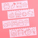 Magst Du es, Dinge zu verschönern? Mit diesem 4-teiligem Set verwandelt sich jedes Projekt in ein kleines, zuckersüßes Kunstwerk. Ob für Scrapbooks, zum Stempeln, als Torten-Spitze oder für Wanddeko — diese Schablonen sind vielseitig, praktisch und einfach kawaii.